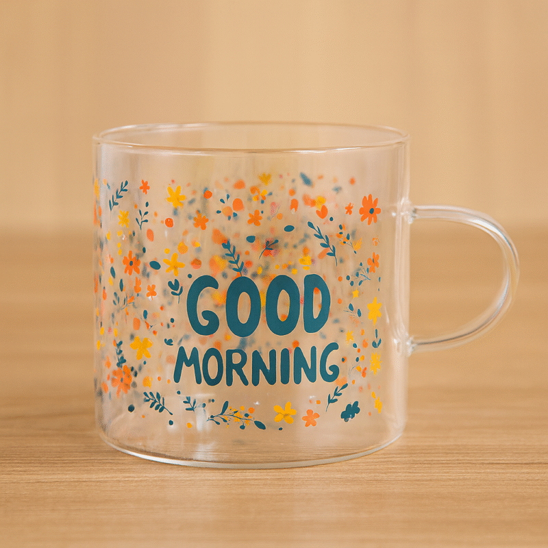 Tasse à Café en Verre – Good Morning – Design Fleuri et Transparent (1 pièce)