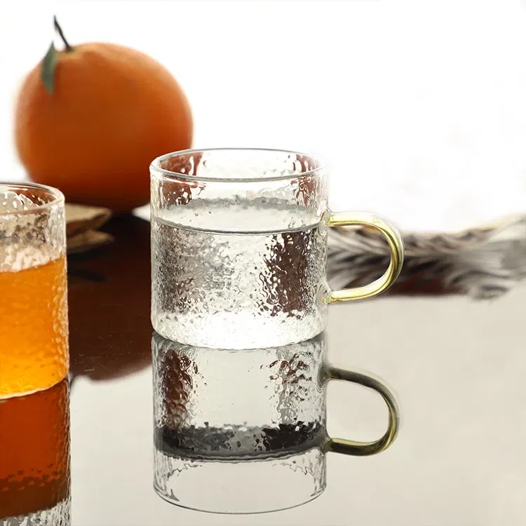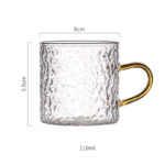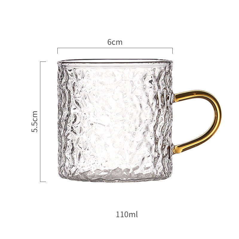 Ajoutez une touche d’élégance à vos moments café avec cette tasse en verre martelé, aussi raffinée que pratique. Son design transparent texturé capte la lumière pour sublimer toutes vos boissons chaudes ou froides, tandis que sa poignée dorée apporte une finition chic et contemporaine.
