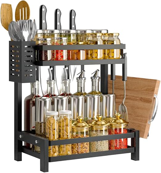 Étagère de Rangement Cuisine Multifonction – Support Épices & Ustensiles avec Porte-Couteaux Intégré