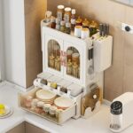 • Tiroir transparent inférieur : Parfait pour stocker des recharges d’épices, sachets, condiments ou petits pots.