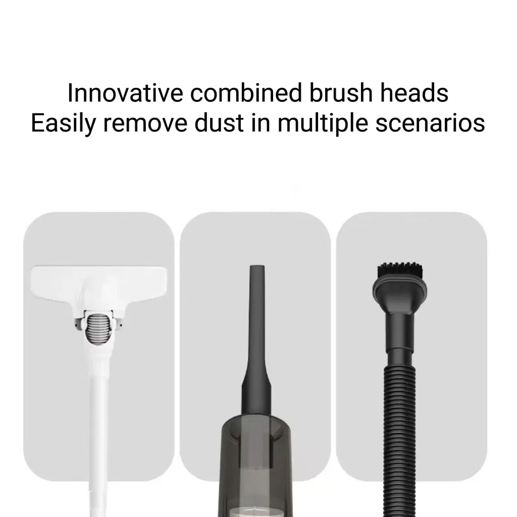• Brosses Multi-usages Innovantes : Équipé d’une gamme de têtes de brosse combinées (suceur plat, brosse large, brosse flexible), il s’adapte à toutes les surfaces et tous les scénarios de nettoyage, des tapis aux plafonds.