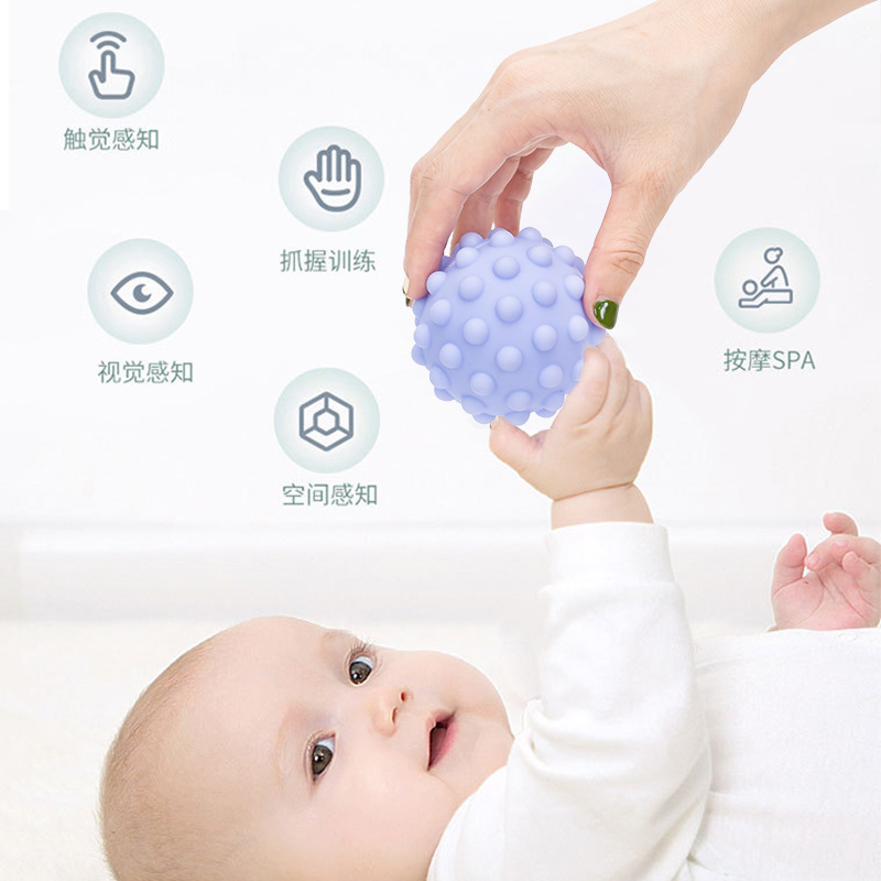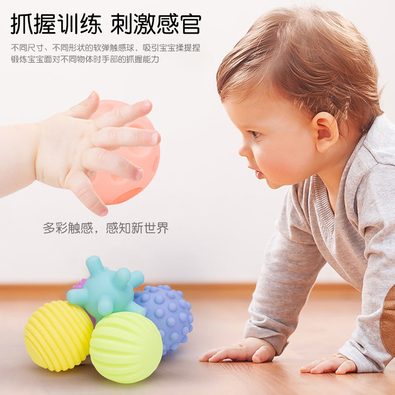 6 balles en formes et textures différentes (bosses, stries, picots, etc.)