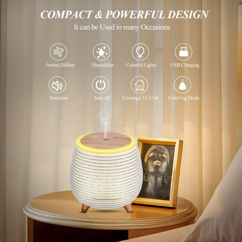 Apportez une touche de zen et de bien-être à votre intérieur avec ce magnifique diffuseur d’huiles essentielles au design élégant en imitation bois 🌿.