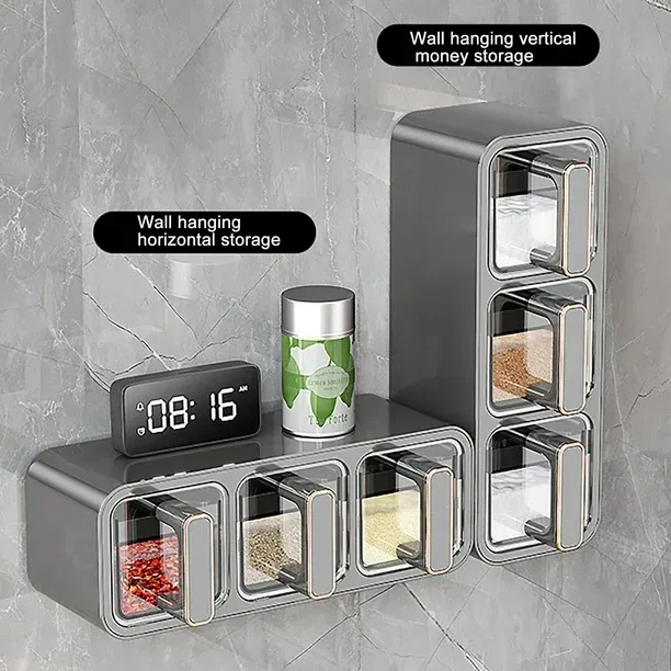 Organisez vos épices avec style et praticité grâce à ce distributeur mural à 3 compartiments, idéal pour optimiser l’espace dans votre cuisine tout en gardant vos ingrédients à portée de main.