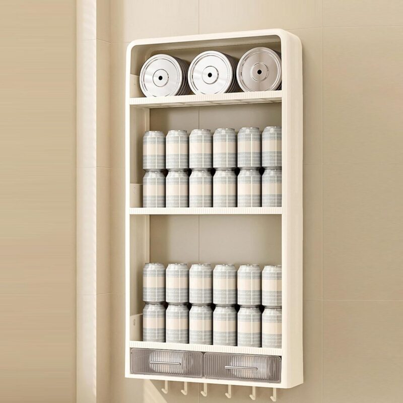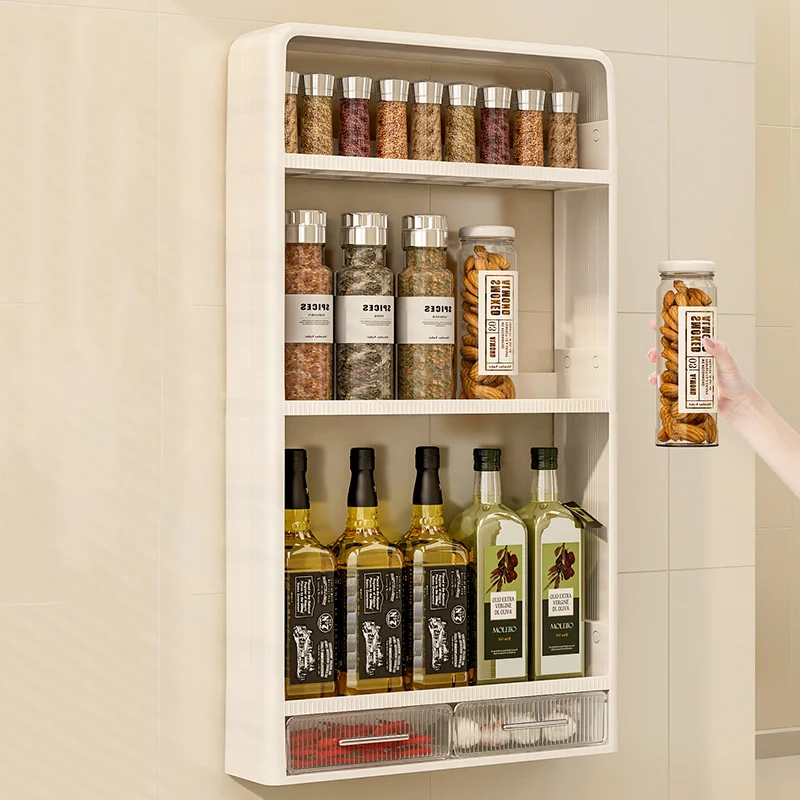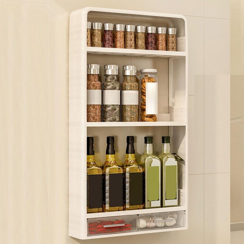 Étagère murale de cuisine 3 niveaux avec tiroirs – Rangement pratique sans perçage