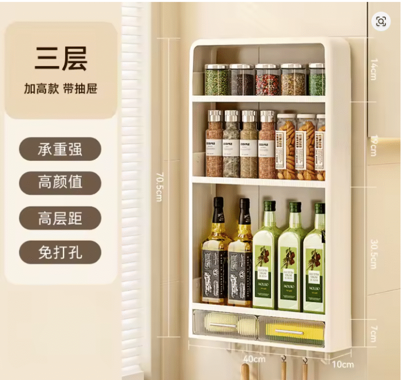 Soyez le premier à laisser votre avis sur “Étagère murale de cuisine 3 niveaux avec tiroirs – Rangement pratique sans perçage”