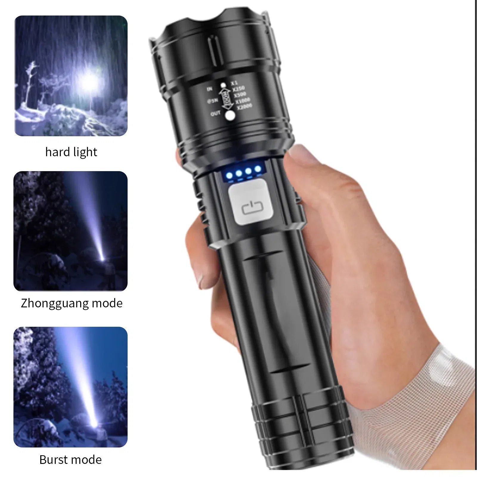 Plusieurs niveaux d’intensité et options d’éclairage (fort, moyen, stroboscopique, SOS) adaptés à chaque situation.