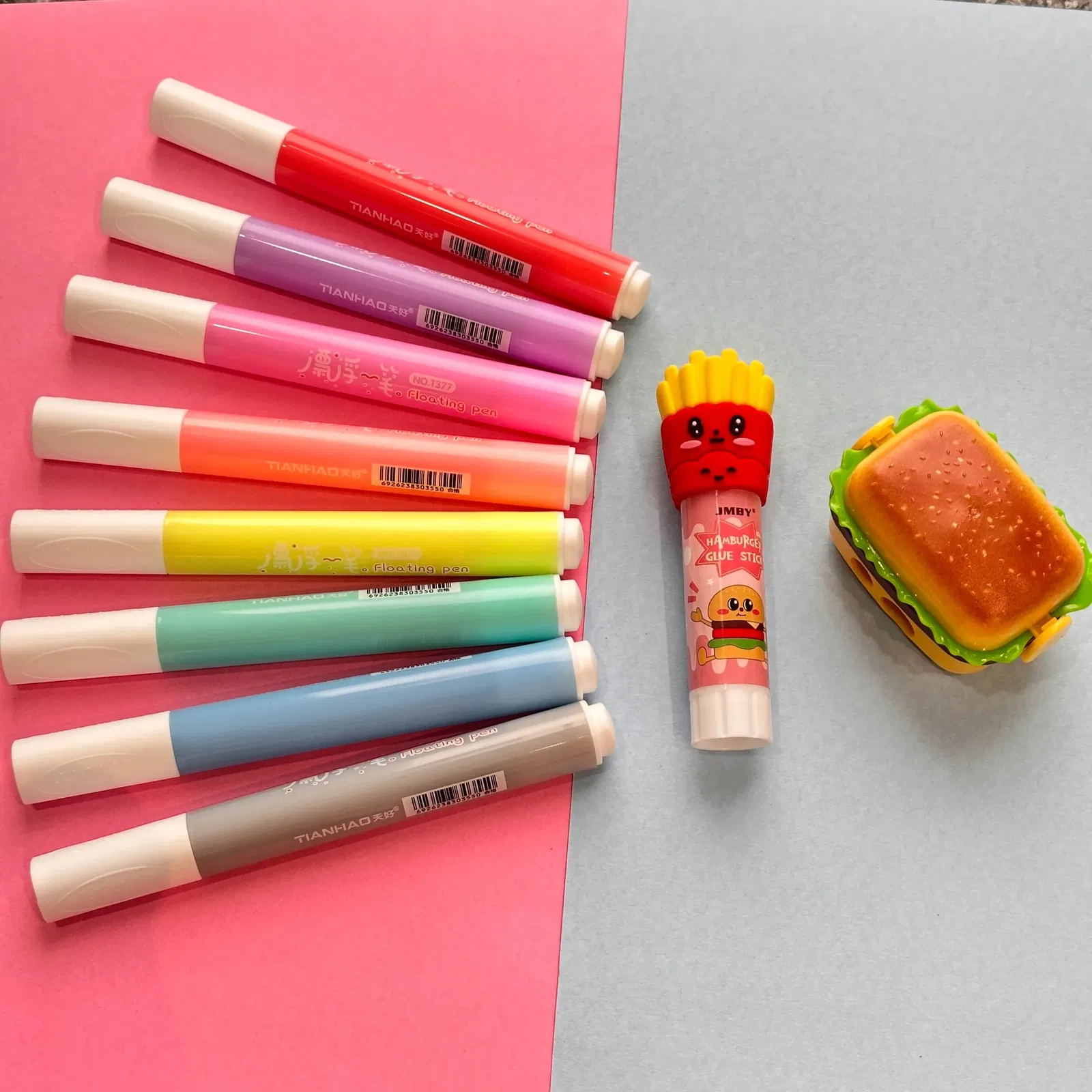Chaque stick est orné d’un bouchon en forme de frites croustillantes ou de burger gourmand, pour coller vos papiers avec style et bonne humeur 🎨✨.