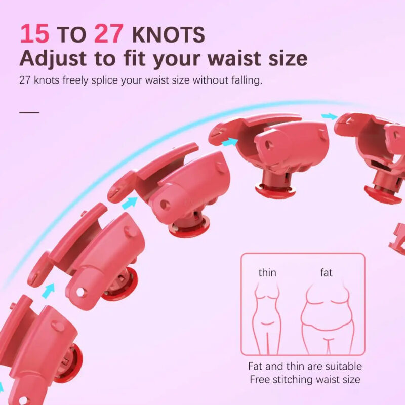 Cerceau de Fitness Intelligente Rose – Hula Hoop Ajustable 24 Nœuds avec Poids | Brûle-Graisse Taille & Abdos
