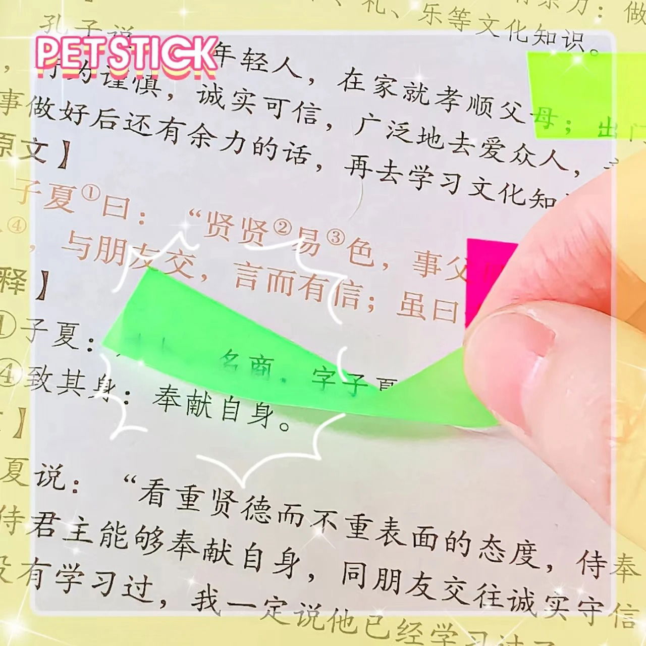 Adhésif repositionnable : Se colle et se décolle sans abîmer vos pages, idéal pour marquer temporairement ou durablement.