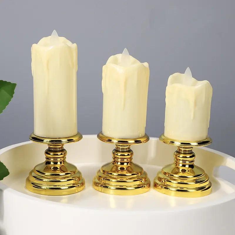 Lot de 3 Bougies LED avec Support Doré – Ambiance Chic & Sans Danger