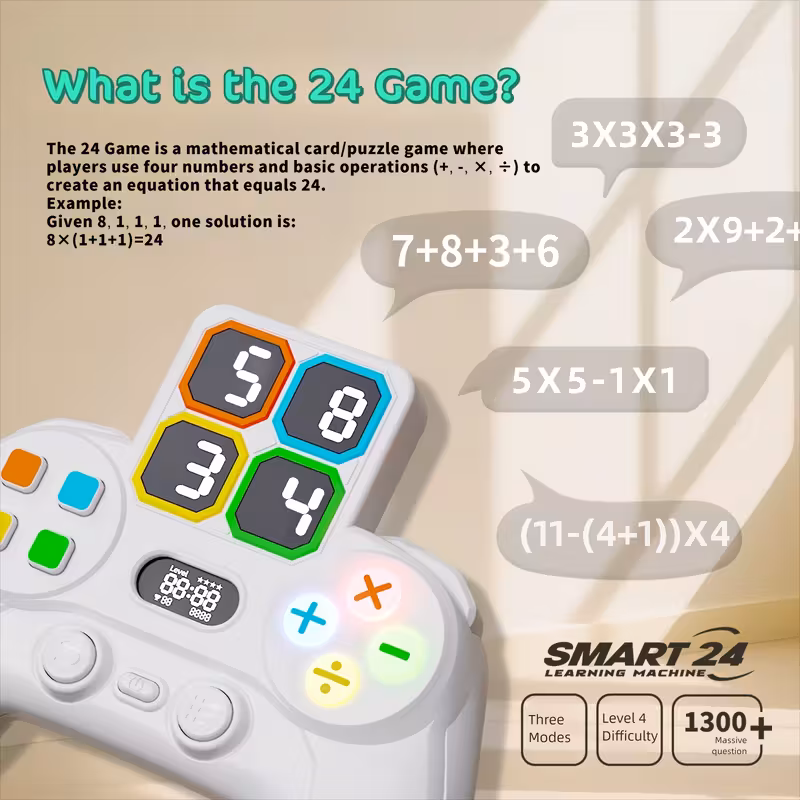 Transformez les mathématiques en un jeu passionnant grâce au SMART 24, un jeu éducatif électronique conçu pour aider les enfants à développer logique, rapidité, concentration et calcul mental.