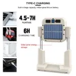 🔌 Recharge via USB Type-C (6 h de charge) ou panneau solaire intégré
