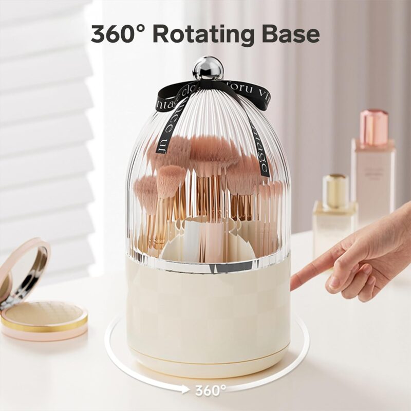Son couvercle transparent en dôme protège vos pinceaux de la poussière tout en permettant de les voir en un coup d’œil 👀. Avec ses 6 compartiments intelligemment répartis, il offre assez d’espace pour ranger pinceaux, rouges à lèvres, crayons et autres essentiels beauté.