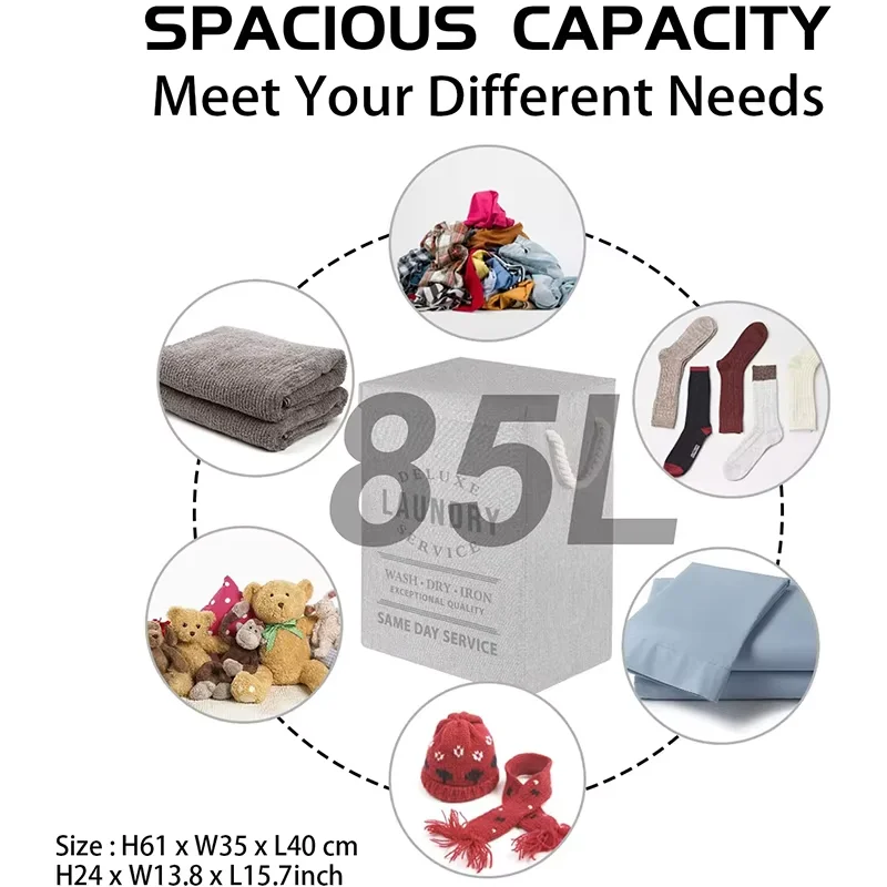 Panier à Linge Pliable 85L – Style “Laundry Service”