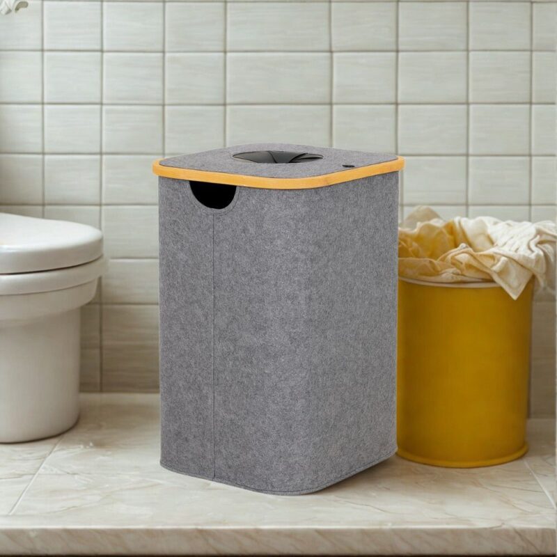 Alliez élégance, praticité et gain de place avec ce panier à linge haut format, parfait pour optimiser le rangement dans votre salle de bain ou votre buanderie. Son revêtement en tissu gris doux au toucher et sa finition bois claire en font un accessoire aussi esthétique que fonctionnel.