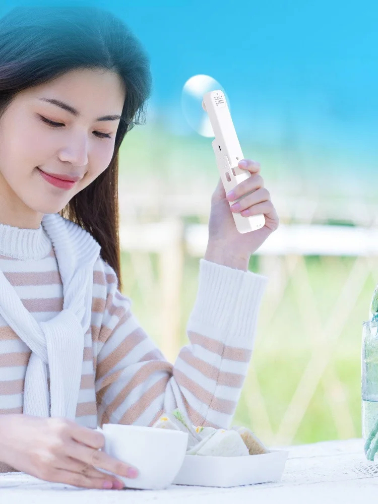 🖐️ Utilisation 2 en 1 : À la main ou posé comme ventilateur de bureau grâce à sa base pliable.