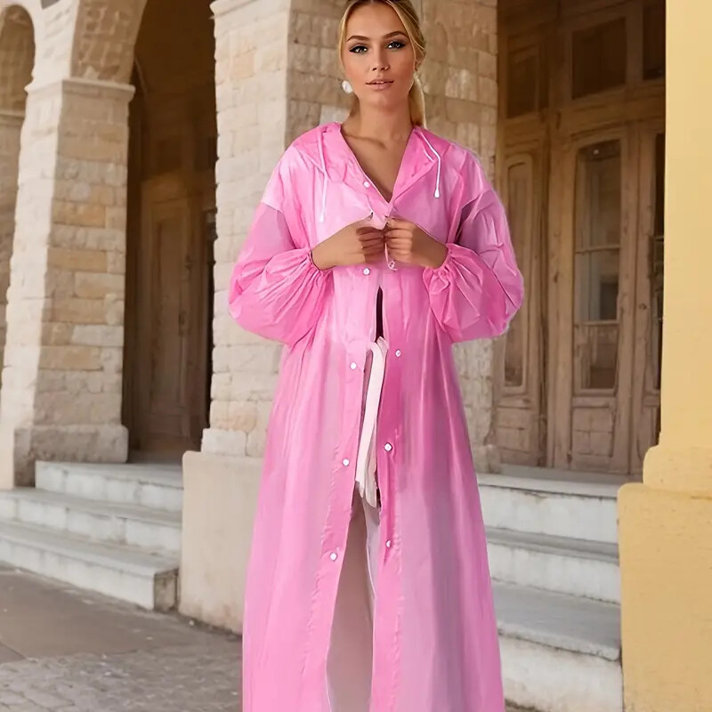 Affrontez les intempéries en toute sérénité avec cet imperméable long avec capuche, conçu pour vous protéger de la pluie tout en ajoutant une touche de couleur à votre tenue. Disponible en jaune, rose et gris, il est à la fois pratique et stylé, parfait pour toutes vos sorties en extérieur, qu’il pleuve ou qu’il vente.