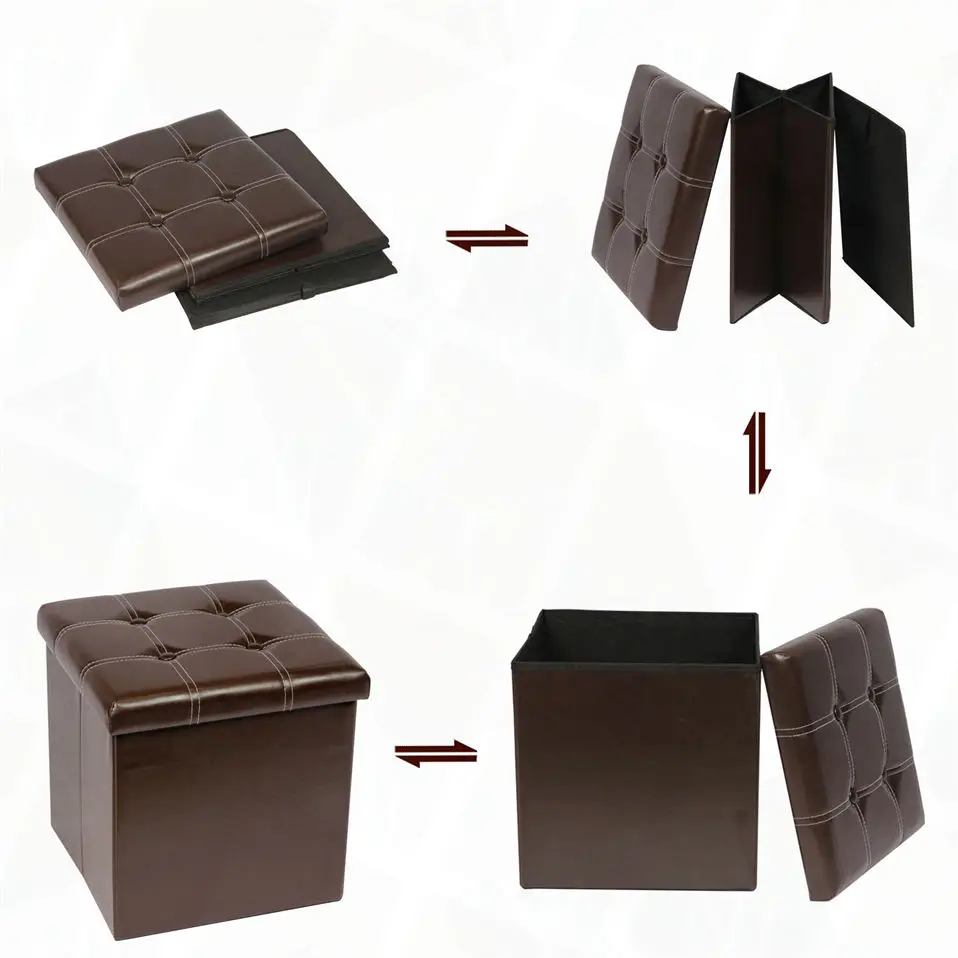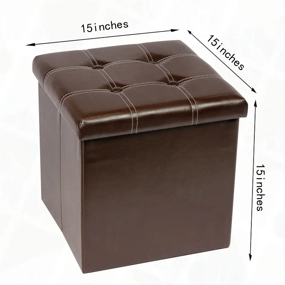 Pouf de Rangement Pliable – Ottoman Assise Confortable, Similicuir Résistant – 15x15x15 Pouces
