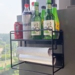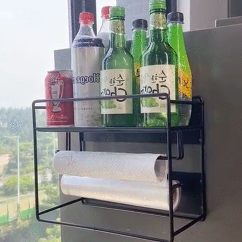 Optimisez votre espace en cuisine avec cette étagère magnétique ultra-pratique ! À la fois organisateur, porte-bouteilles et distributeur d’essuie-tout, elle se fixe facilement sur toute surface métallique comme un réfrigérateur.