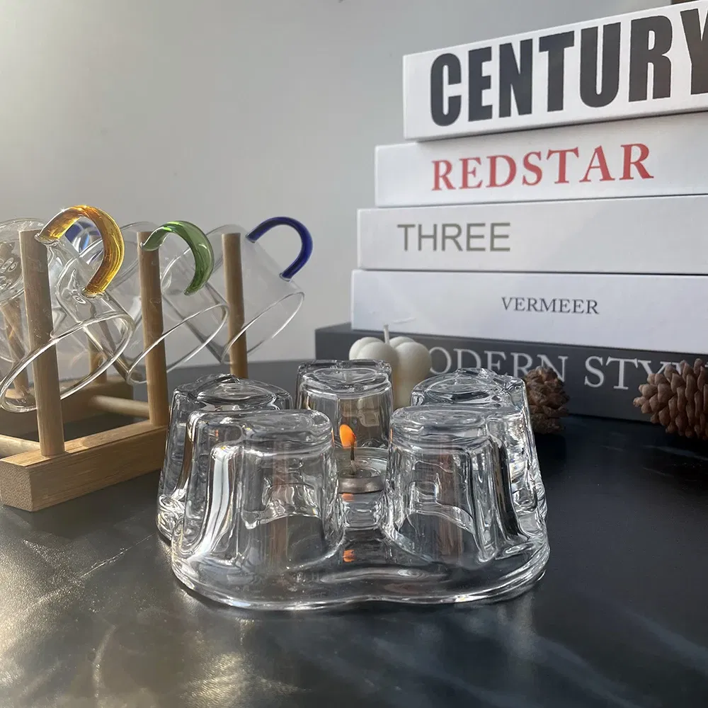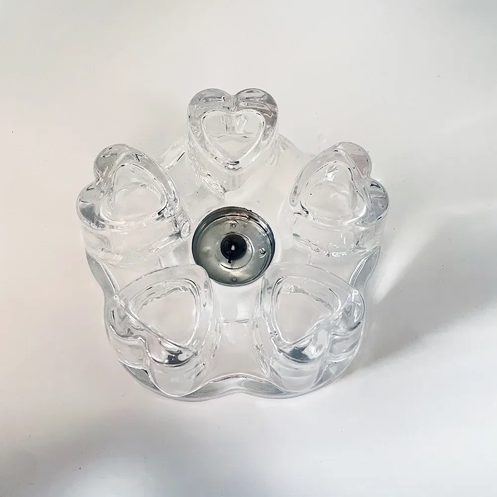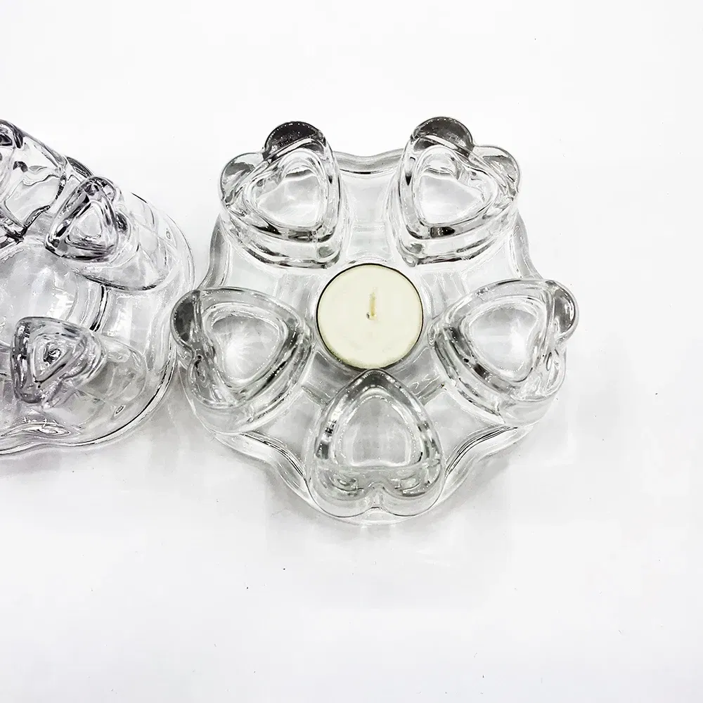 Ajoutez une note de douceur et d’élégance à vos soirées grâce à ce bougeoir en verre transparent au design unique. Composé de 6 motifs en forme de cœur disposés en cercle autour d’un emplacement central pour bougie chauffe-plat, ce porte-bougie est à la fois un objet de décoration et un accessoire d’ambiance chaleureux.