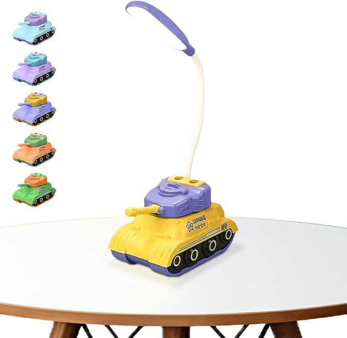 Ajoutez une touche de fun et de praticité à votre bureau ou à la chambre de vos enfants avec cette lampe LED en forme de tank 🪖. Plus qu’une simple lampe, elle fait aussi office de porte-stylo et de support téléphone, idéale pour les devoirs, la lecture ou le divertissement.