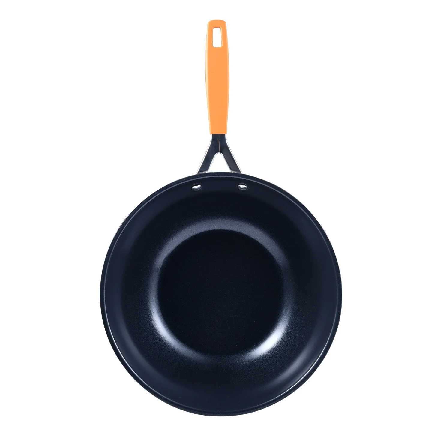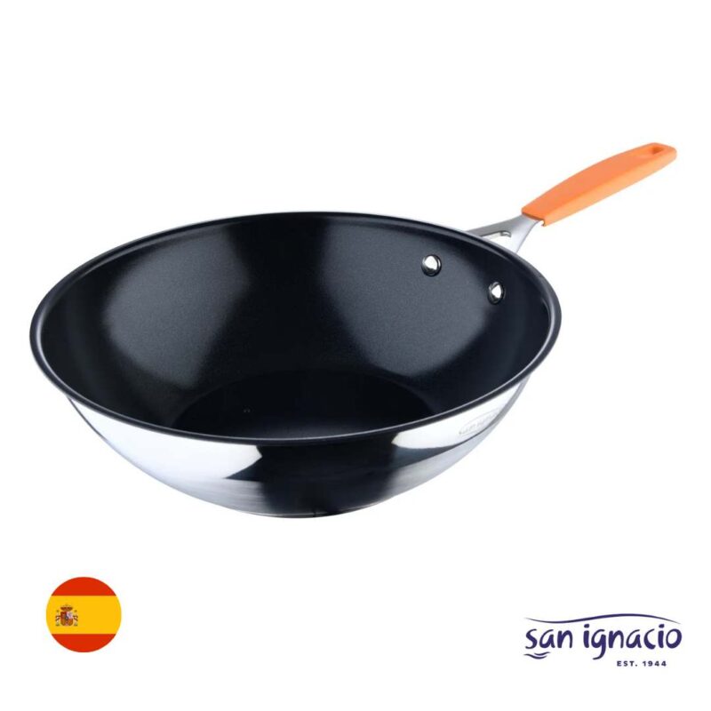 Préparez de délicieux plats sautés, woks asiatiques et recettes familiales avec ce wok San Ignacio de 28 cm. Fabriqué en matériaux de haute qualité, il assure une cuisson homogène, saine et sans accroche, tout en offrant un design moderne avec poignée ergonomique orange.